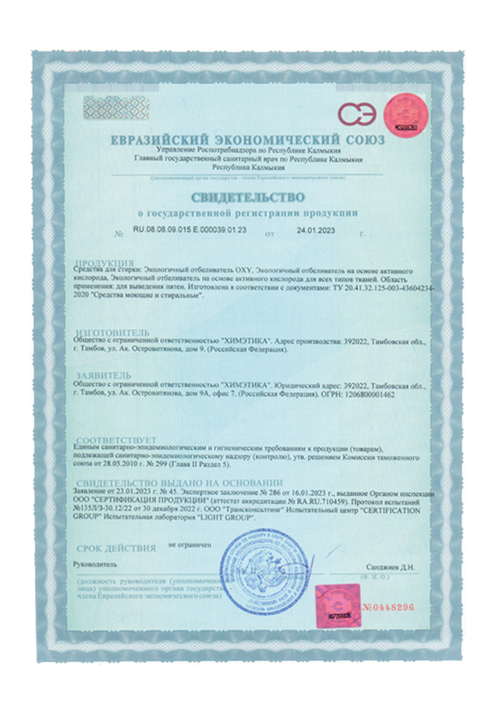 Эффективный универсальный отбеливатель на основе активного кислорода без запаха.